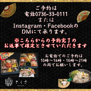 おせちのご予約は☏0736-33-0111又は、Instagram・FacebookのDMにて受け付けいたします♪